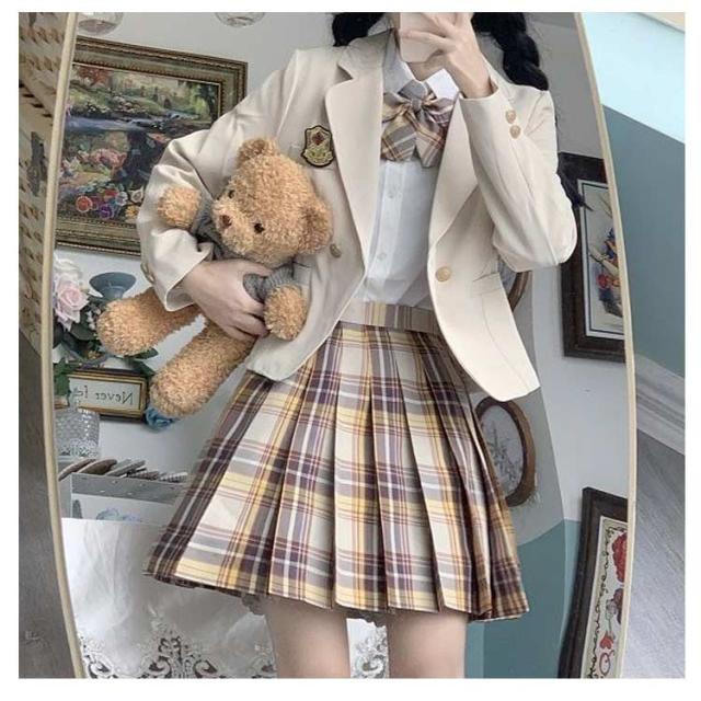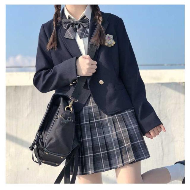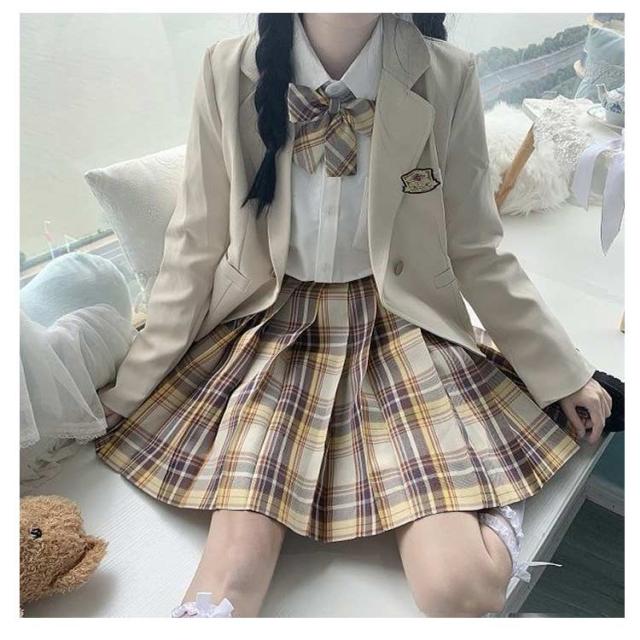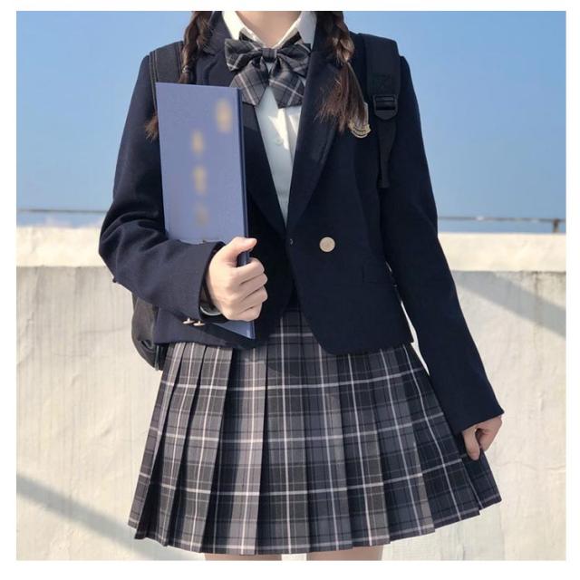 | ブレザー付き制服セット! しっかりした生地と柔らかな肌触りで着心地が抜群♪ チェック柄のリボンが印象的で、着こなしのお洒落なアクセントとなります☆ コスプレ、入学式、卒業式、文化祭、撮影、普段着などにおススメ。 | |