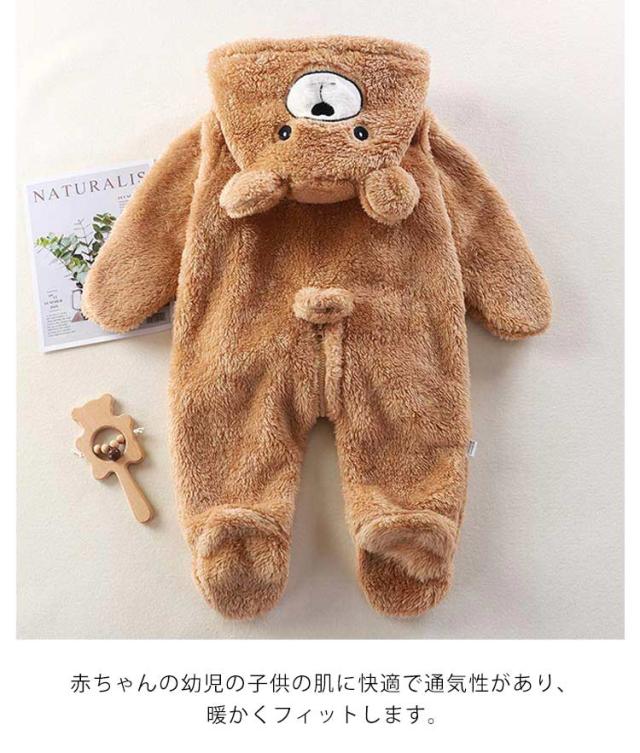 防寒 ロンパース アウター カバーオール ジャンプスーツ ふわふわ プレゼント カバーオール ギフト 暖かい クマ 赤ちゃん くま ベビー服 新生児 ベビー服 女の子 男の子 着ぐるみ 着る毛布 もこもこ 出産準備 あったか 撮影 クリスマス プレゼント ベビー服