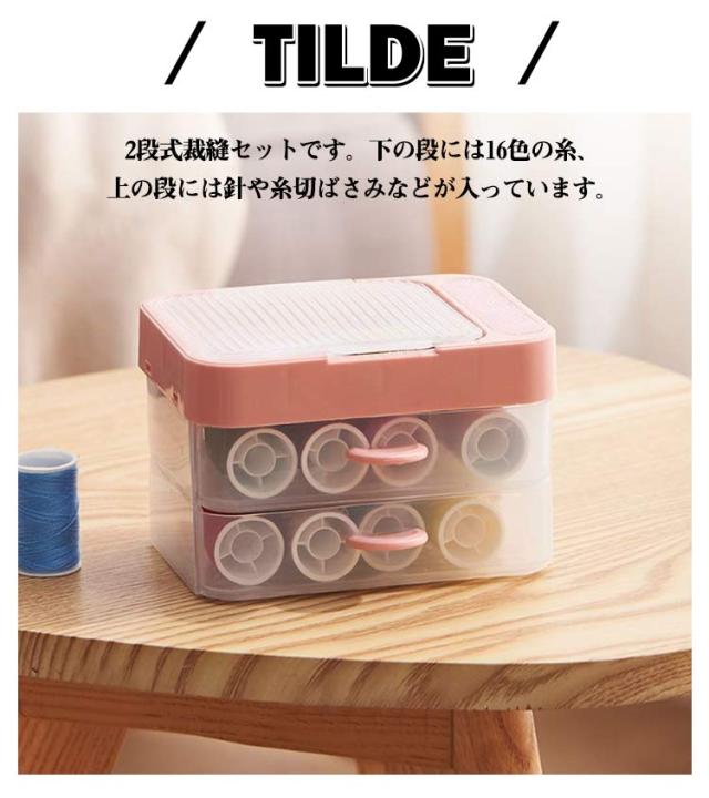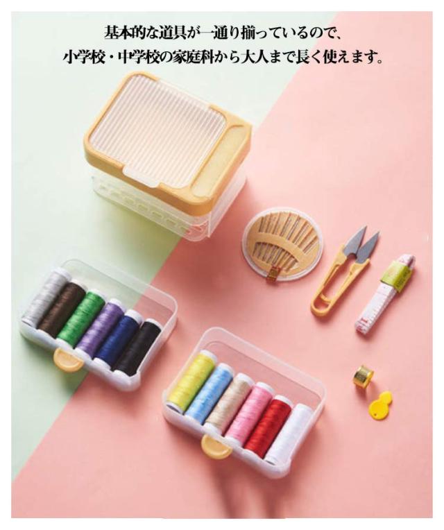 | シンプルでアレンジ自在!小学校〜大人まで便利な裁縫セットです。 便利な36点セット!16色糸巻や指ぬき、ひもとおし、糸切ばさみ、縫い針、メジャー。 2段式裁縫セットです。下の段には16色の糸、上の段には針や糸切ばさみなどが入っています。 基本的な道具が一通り揃っているので、小学校・中学校の家庭科から大人まで長く使えます。 裁縫道具をコンパクトに収納できて、持ち運びにも最適です。 | |