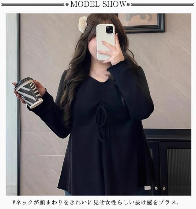 長袖 レディース シンプル カットソー ペプラムトップス Tシャツ フリル袖 プルオーバー vネック ペプラムトップス リボン ペプラム 裾フレア 体型カバー ギャザー きれいめ オケージョン セレモニー ブラック
