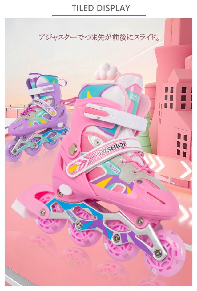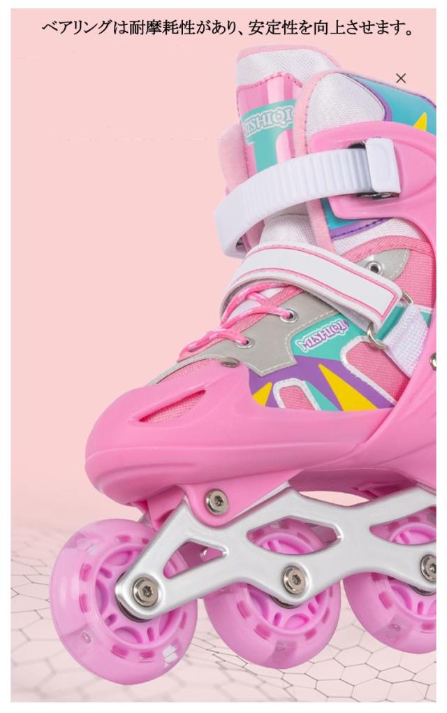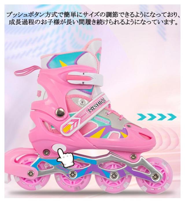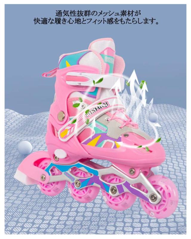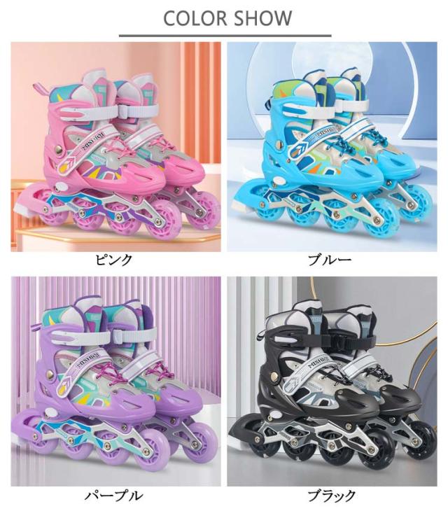 | お子様に大人気のローラースケート!男女を問わず、学生から社会人まで、あらゆる方も楽しめます。 アジャスターでつま先が前後にスライド。 ベアリングは耐摩耗性があり、安定性を向上させます。 通気性抜群のメッシュ素材が快適な履き心地とフィット感をもたらします。 プッシュボタン方式で簡単にサイズの調節できるようになっており、成長過程のお子様が長い間履き続けられるようになっています。 クリスマス、記念日、誕生日などのお祝い・贈り物(ギフト)にも適応です。 | |