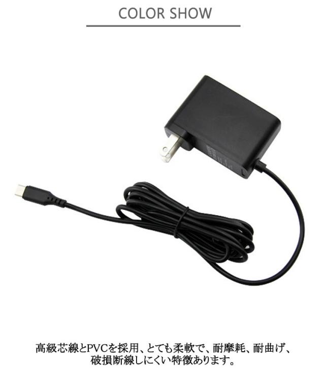 | サイズについての説明 | 対応機種:Nintendo Switch セット内容:USB ACアダプター。規格:USB タイプC 入力:AC100-240V 出力:DC5.0V、2.4A |