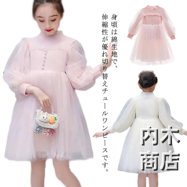 レビュー高評価商品 売上急増中 子供ワンピース 子供 子供服 キッズ 軽量仕様 品質安心 入学式 入園式 結婚式 春 パール 暖かい パーティードレス 切り替え ボリューム袖 ワンピース 冬 卒園式 発表会 韓国 プレゼント チュールワンピース 長袖 秋