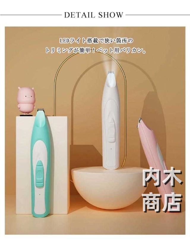 トリマー ライト付き ペット用バリカン ペット用 業務用 猫 犬 静音 充電 小型軽量 コードレス 低振動 刃水洗い可 家庭用 臀部 グルーミング 足裏 クリッパー ミニブレード 電動バリカン トリミング 耳裏 低騒音 顔回り 部分カット 精鋼技術 肉球
