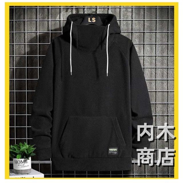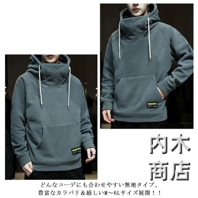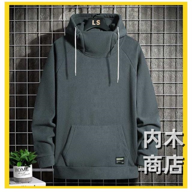パーカー ハイネック 大きサイズ フード 暖かい ハイネック 春秋冬 裏起毛 プルオーバーパーカー 30代 メンズ 長袖 ?5サイズ!ボリュームネックパーカー