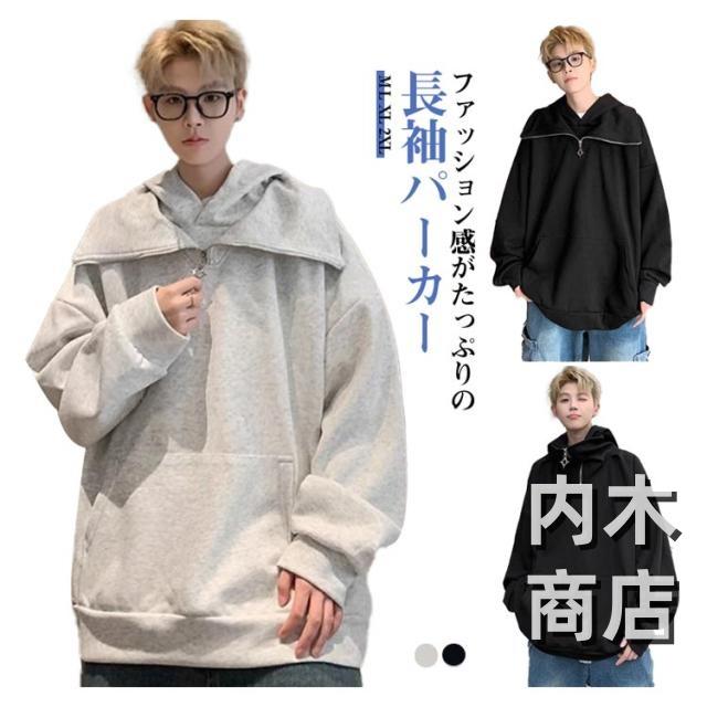 サイズ メンズ プルオーバー おしゃれ パーカー ぱーかー 春秋 大きい ハイネック ビッグシルエット 秋冬 メンズファッション パーカー 長袖 スウェットパーカー カジュアル トップス 冬 無地 韓国風 春 カジュアル おしゃれ ビッグパーカー