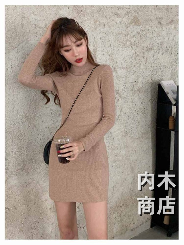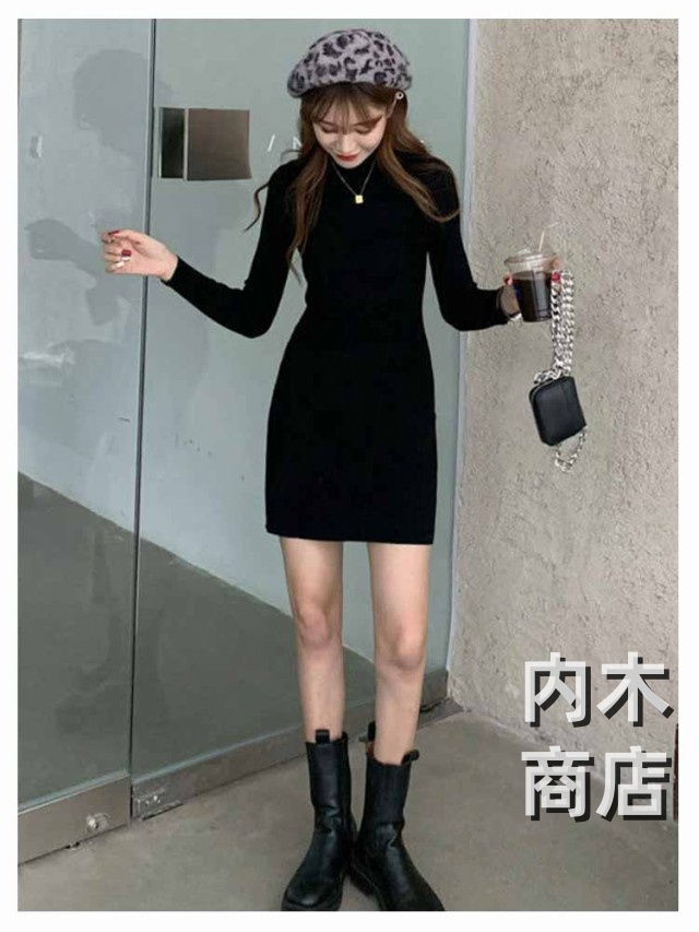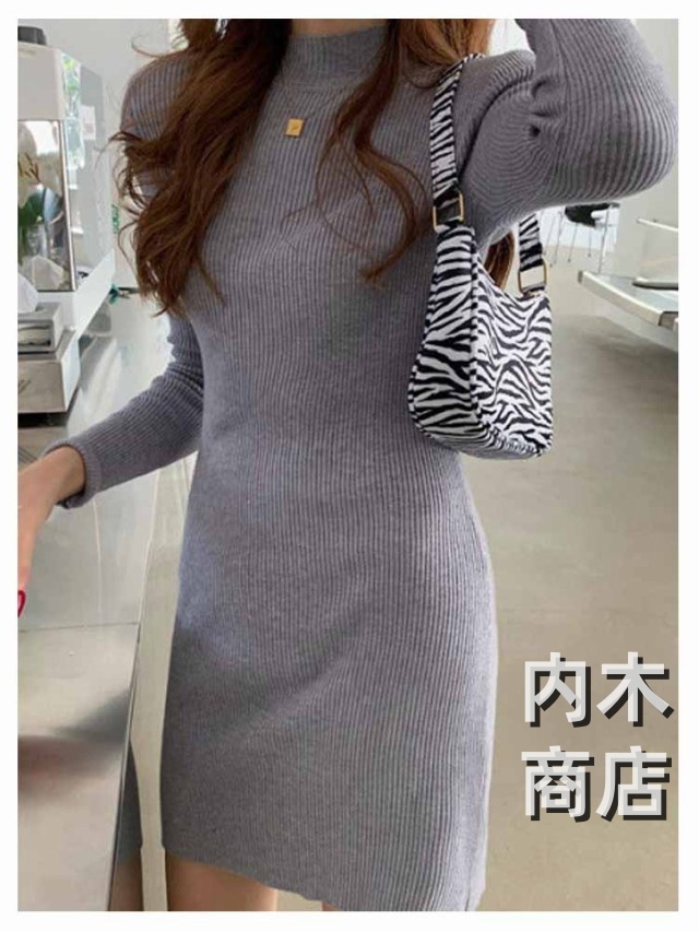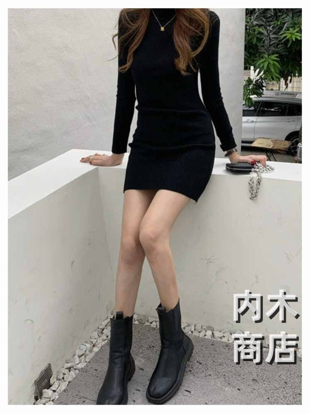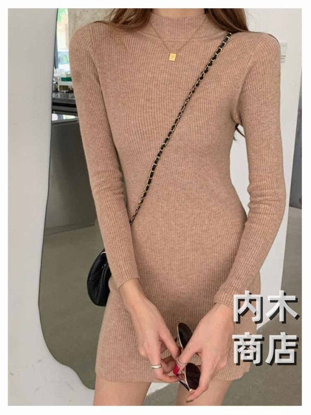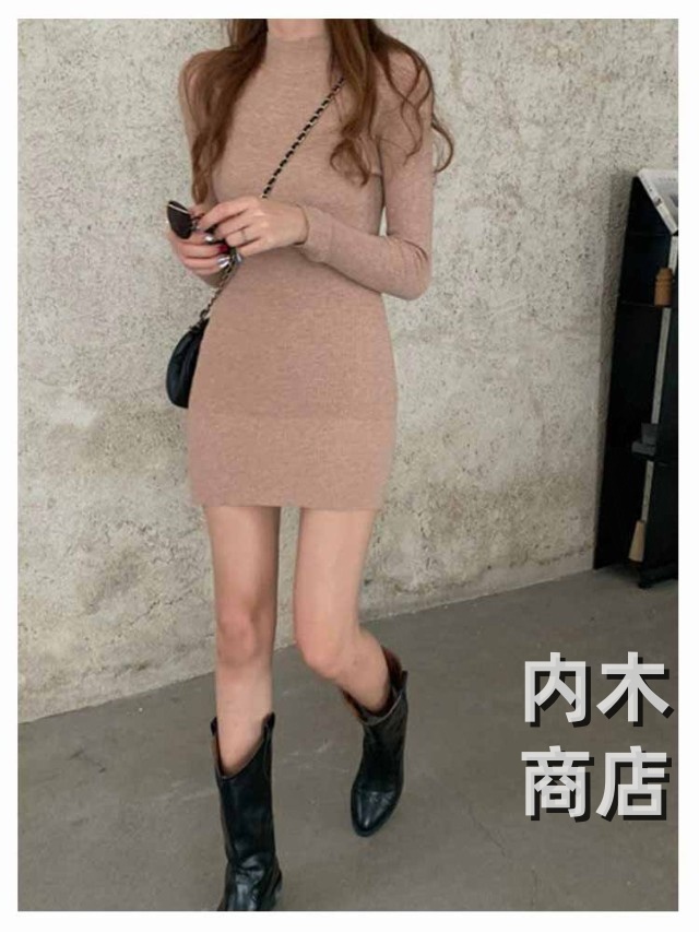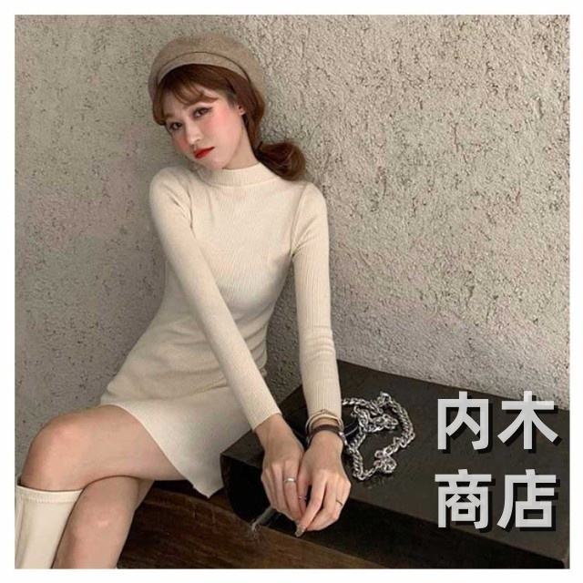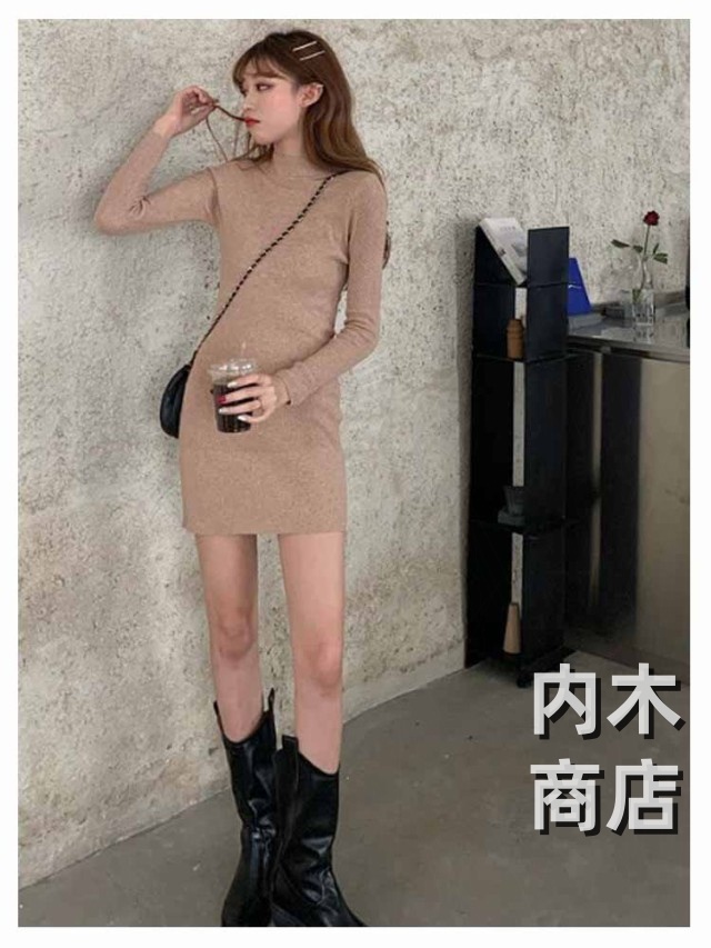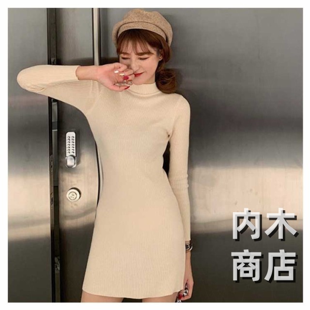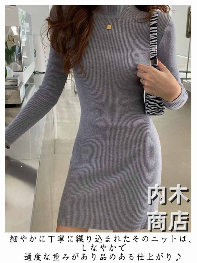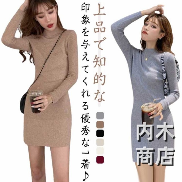 新登場 ランキング常連 シンプル レディース ニットワンピ 黒 ワンピース チュニック カジュアル 膝丈ワンピース トップス ハイネック ロングワンピース 大人 きれいめ 秋冬 膝丈 長袖 オシャレ タイト ニットソー プチハイネック ニットワンピース