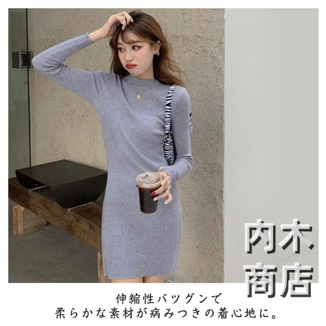 レディース 長袖 きれいめ タイト ロングワンピース トップス プチハイネック ハイネック 黒 膝丈ワンピース カジュアル ニットソー 秋冬 ニットワンピ ニットワンピース ワンピース チュニック 大人 シンプル ニットワンピース カジュアル ワンピース 膝丈 オシャレ