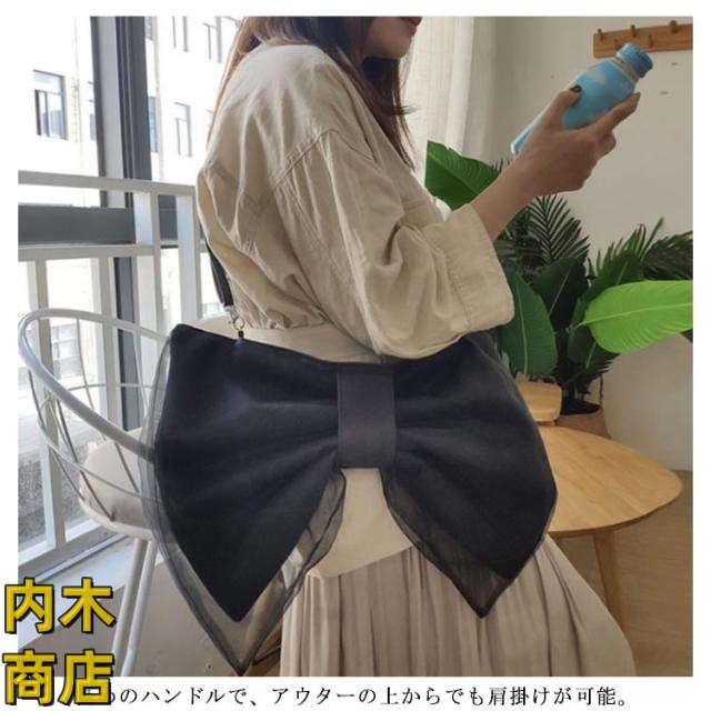 即納OK シンプル トートバッグ ショルダーバッグ バッグ ブラック ミニバッグ SNS話題 鞄 ミニショルダー リボンモチーフ 斜め掛け 蝶結び 大きなリボン 女の子 リボン型 オーガンジー シアー素材 可愛い ビッグリボン かばん 肩掛け 送料無料