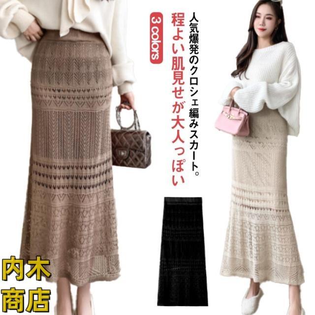 売上急増中 オフィスカジュアル 収納便利 クロシェ編み ウェストゴム 秋冬 かぎ編み マキシ丈 ロング丈 マーメイドスカート 透かし編み シースルー 膝下スカート セレモニー スカート 入卒式 レース エレガント 結婚式 ロングスカート キレイめ 春夏