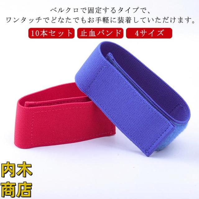 | 【10本セット】 【止血バンド】 【4サイズ】 ベルクロで固定するタイプで、ワンタッチでどなたでもお手軽に装着していただけます。 伸縮性も兼ね備えているため、お好みに合わせて固定の強さを調節可能です。 止血用ガーゼと一緒に使用することで止血を効率よくしていただけます。 【皮膚に優しい】皮膚にも優しく安心してご利用頂けます。 【4種類のサイズからお選びいただけます♪】 それぞれの体型に合ったサイズをお選びいただけます。 お子様から大人の方まで幅広くご利用可能です。 ブルーとレッドでそれぞれ長さが異なるため、使用用途に合わせてご利用ください。 シンプルなデザインで様々な場面で活躍します。 コンパクトなサイズ感で収納にも困りません。 【繰り返し使えます♪】 本製品の止血バンドは、水洗いが可能ですので使用後は洗って保管することで清潔に繰り返しご使用頂けます。 看護師さんにも重宝されるナース用品です。 ※洗濯時の色落ちにはご注意ください。 | |
