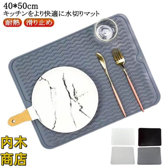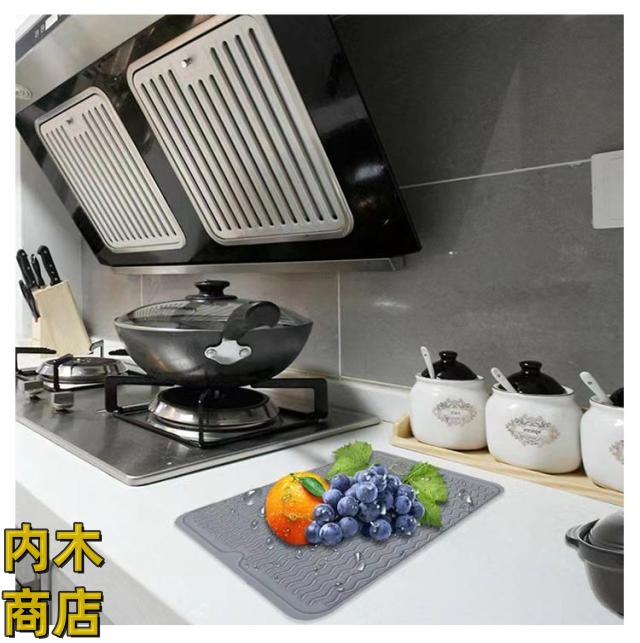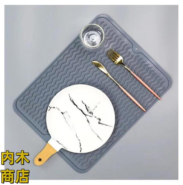 | キッチンをより快適に水切りマット。40*50cm シンプルでおしゃれな北欧デザインです。 使わないときは、吊るしたり、折り畳んだり、丸めたりしてコンパクトに収納することができます。 波形が熱やキズからシンクを守ります。 熱い鍋やフライパンが置けます。 | |