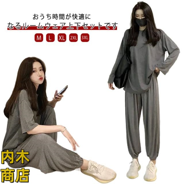 | おうち時間が快適になるルームウェア上下セットです。 プルオーバーとパンツのセットアップ。サラッと軽い着心地で、ストレスフリー ゆったりしたサイズでルームウェアや普段着としてはもちろんのこと。なめらか素材で動きやすいです シンプルなデザインでセットアップなのでおしゃれ。ちょっとした外出もOK。 | |