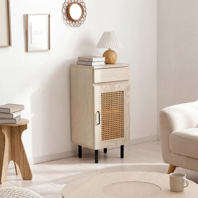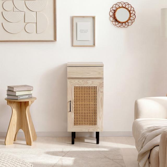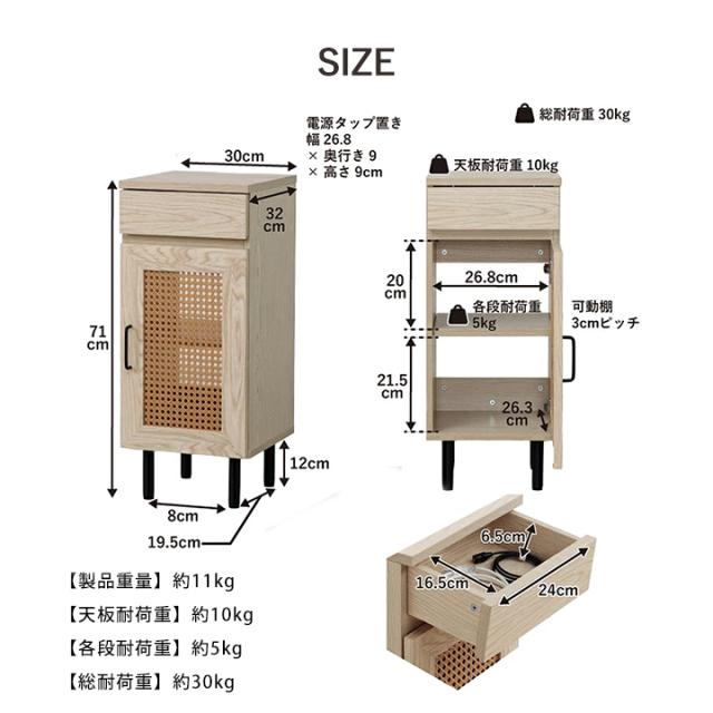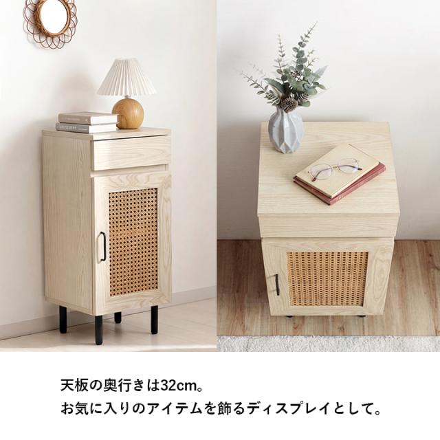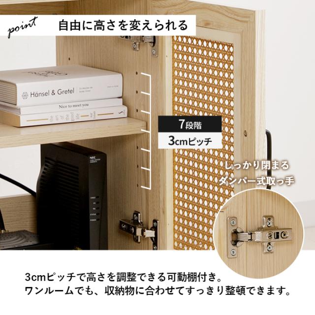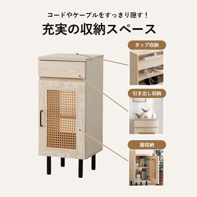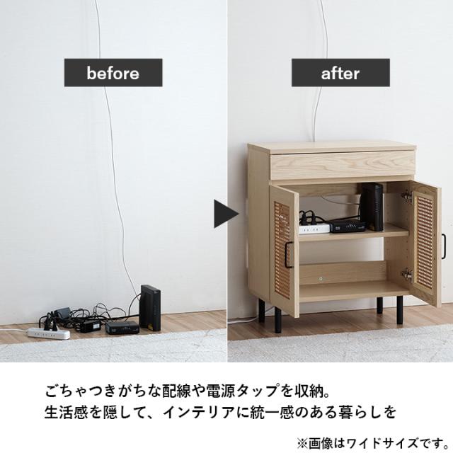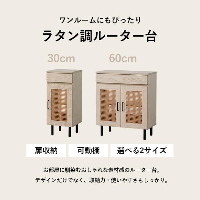 ルーター収納 キャビネット 「 ナティア ルーター隠し台 スリム 」 幅30cm ナチュラル ラタン調 木目 北欧 おしゃれ 収納棚 棚 扉付き 電話台 ファックス台 リビング 一人暮らし 新生活