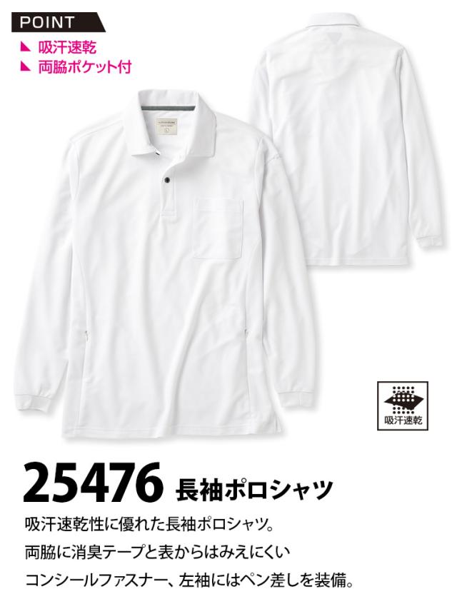 クロダルマ 長袖ポロシャツ 25476 鹿の子 吸汗速乾 両脇ファスナーポケット 両脇消臭テープ 左袖ペン差し 裾スリット カジュアル 秋冬 作業服 作業着 KURODARUMA