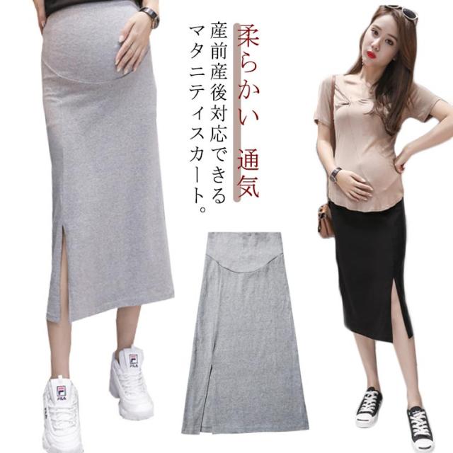マタニティスカート タイトスカート スリット 膝下丈 ニットスカート マタニティ ロングスカート ニットスカート ミモレ丈 スカート タイト 産前 産後 アジャスター調節 ハイウエスト 春 夏 秋 通勤
