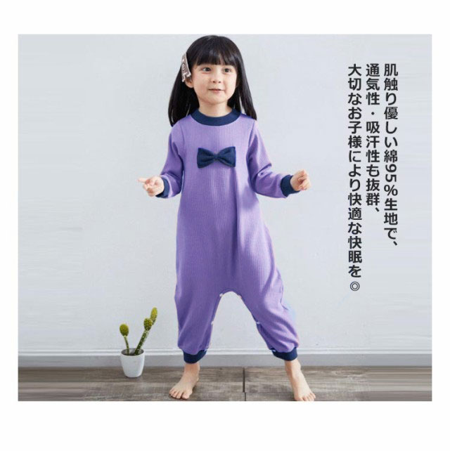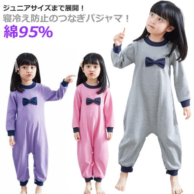 | ジュニアサイズまで展開!寝冷え防止のつなぎパジャマ! 90cmサイズから160cmサイズまでを取り揃え、小学生/中学生も着用できるようになっている。 つなぎタイプなので、寝ている間にお腹が冷えてしまう心配もありません。 肌触り優しい綿95%生地で、通気性・吸汗性も抜群、大切なお子様により快適な快眠を◎ 股下はスナップボタンで全開できるから、トイレやおむつ替えもラクラク! 可愛いリボンデザイン、ゆったりとしたサイズ感で、日中の部屋着としても活躍してくれそうですね。 | |