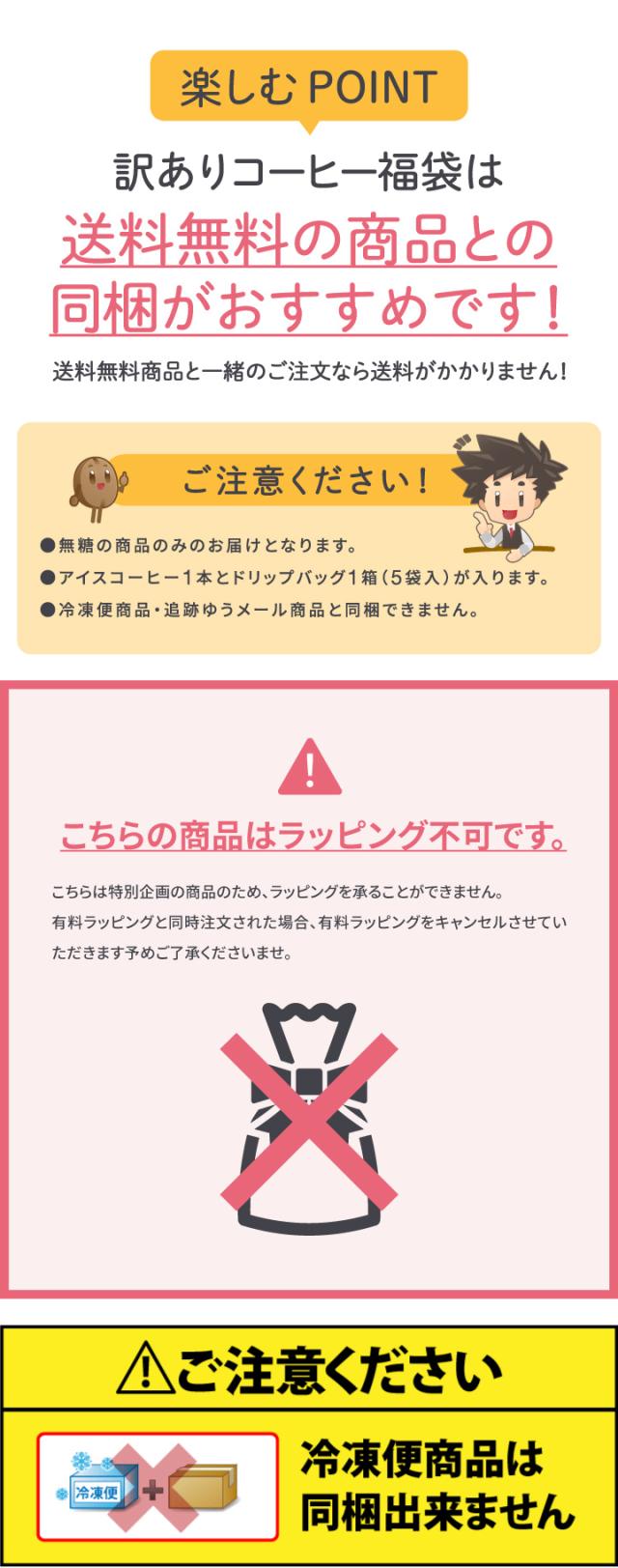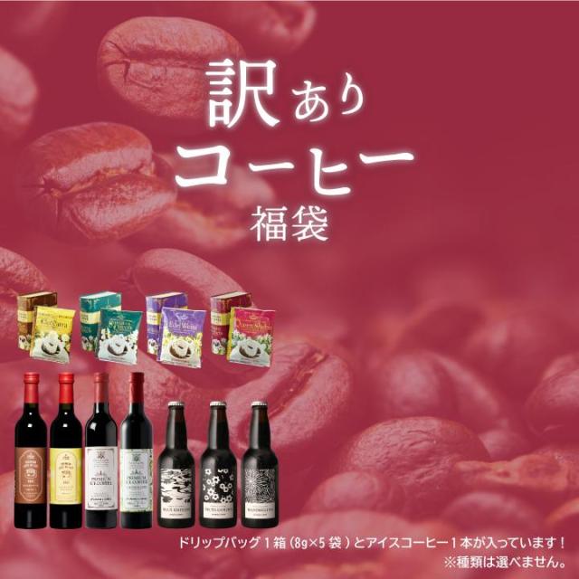 | 贈り物として準備された高級コーヒーが、訳あり品として特別価格で登場。贈答用の高級コーヒーをお得に楽しめる、数量限定の福袋セット。訳ありだけど中身は本格派! 1.訳ありだからお得! 夏ギフトの在庫整理でお得に提供されているため、味や香りはそのまま。中には通常2,000円以上の商品が含まれており、品質にはまったく問題ありません。数量限定・無くなり次第終了なので、見つけたら即ゲットが正解です。 2.本格派のドリップバッグとアイスコーヒーが楽しめる 内容は8g×5袋入りのドリップバッグ1箱と、アイスコーヒー1本のセットで、中身がランダムとなりますが、どれが届いても満足いただける品質と美味しさにこだわったラインナップとなっております。 3.誰でもかんたんに楽しめる ドリップバッグはお湯を注ぐだけ、アイスコーヒーはグラスに注ぐだけでOK。特別な器具や技術は必要なく、誰でも簡単に本格的な味が楽しめます。 | |