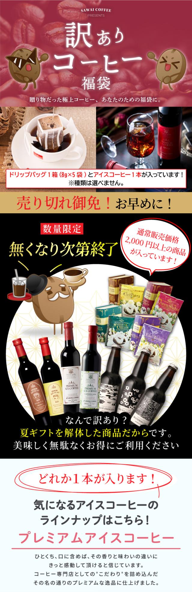訳あり 夏ギフト 解体福袋 お試し お徳用 ギフト ドリップ コーヒー 8g×5袋 アイスコーヒー リキッド 1本 500ml 330ml 澤井珈琲
