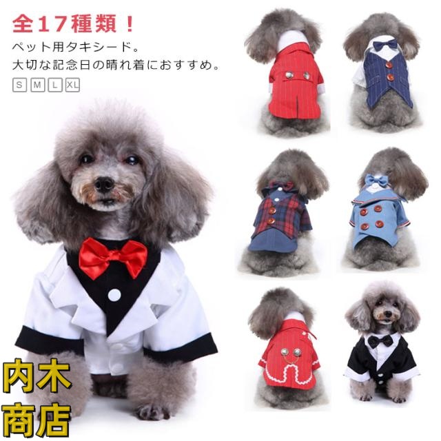 | 全17種類!ペット用タキシード。大切な記念日の晴れ着におすすめ。 家族の御祝い事への参加時はもちろん、イベント時など視線を釘付け! 背中のボタンのアクセントや首元のリボンなどおしゃれ要素がイロイロ。 お誕生日、うちの子記念日、節句や七五三などなど記念日の撮影にもぴったりです。 | |