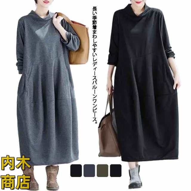 話題商品 生活快適特集 ギフトにも最適 在庫わずか 秋冬 ワンピース プルオーバー ポケット付き ロング丈 ミモレ丈 ゆったり モックネック 2 SNS話題 コクーン 長袖 バルーンワンピース コクーンワンピース バルーン ロングワンピース 即納対応中