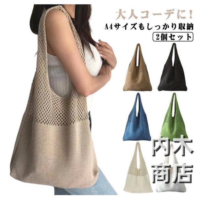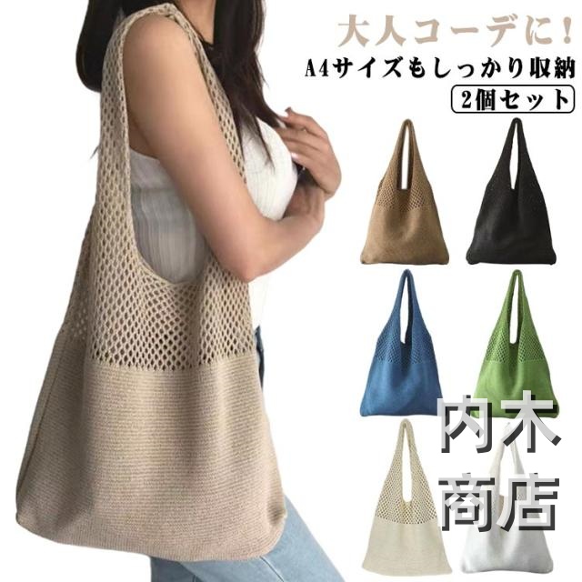 新登場 売上急増中 おしゃれ ニットトートバッグ レッスンバッグ かぎ編みバッグ マルシェバッグ ニットバッグ レディース メンズ 男女兼用 大容量 軽量 海水浴 ランチトート 2個セット クロシェ プレゼント 大人 肩掛け お出かけ 透かし編み ギフト