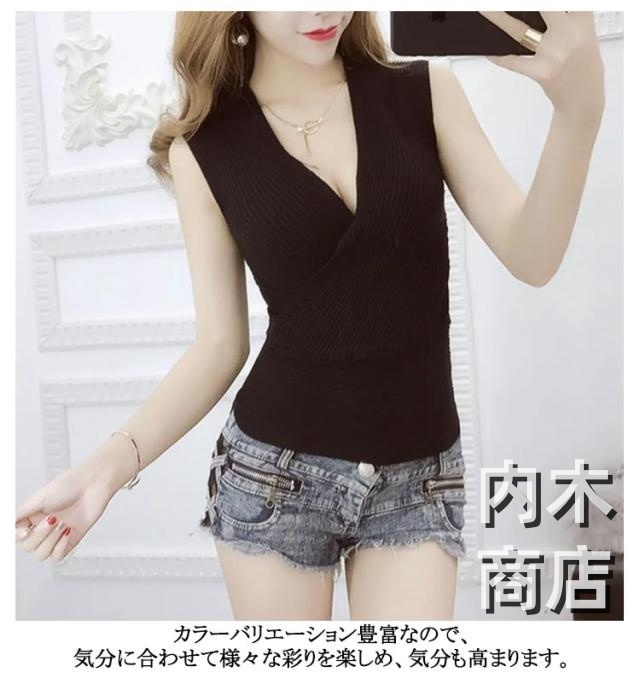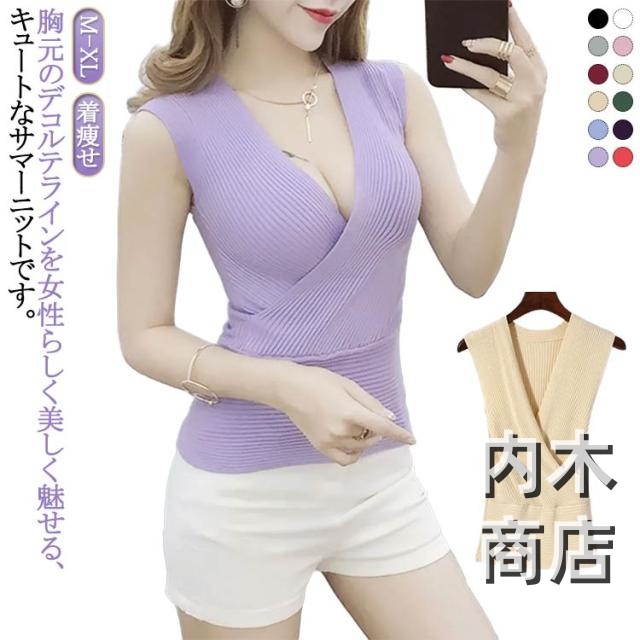 無地 細見え フィットネス タイト インナー レディース 胸元 夏 ネック サマーニット セクシー タンクトップ セクシー セクシー ニット 深い ノースリブ レディース タンクトップ ショート丈 春 着痩せ 薄手 送料無料 夏 ノースリブ サマーニット きれいめ