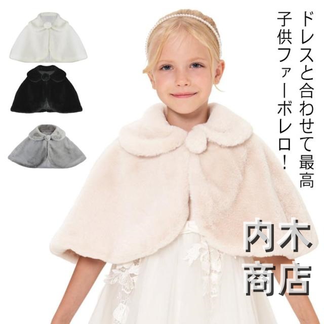パーディー フェイクファー 春 ピアノ演奏会 子供ドレス 音楽会 冬 キッズ 七五三 長袖 ピアノ発表会ケープ 白 フォーマル 1/2/3/4/5/6/7/8/9歳 ウェディングショール ふんわり 記念撮影用 ガールズ ドレスと合わせて最高 誕生日 ドレスと合わせて最高 秋