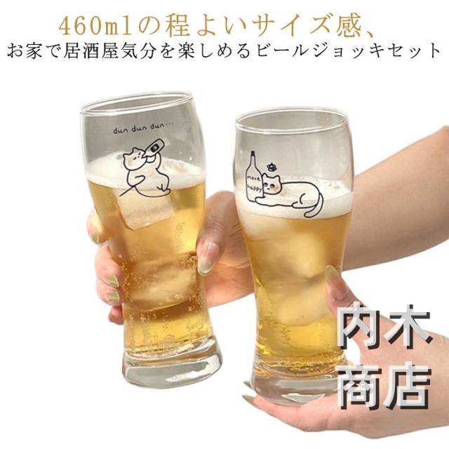 ガラス ビアグラス ビールジョッキ 透明 持ちやすい 460 かわいい コップ ビアグラス セット タンブラー ギフト おしゃれ 上品 ビールグラス 来客 おしゃれ 2個セット ハイボール レディース クリア ビール プレゼント 猫柄 家庭用 誕生日