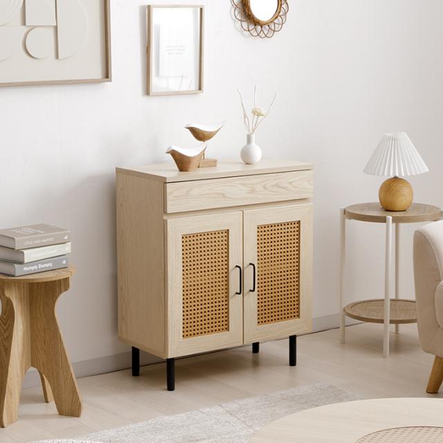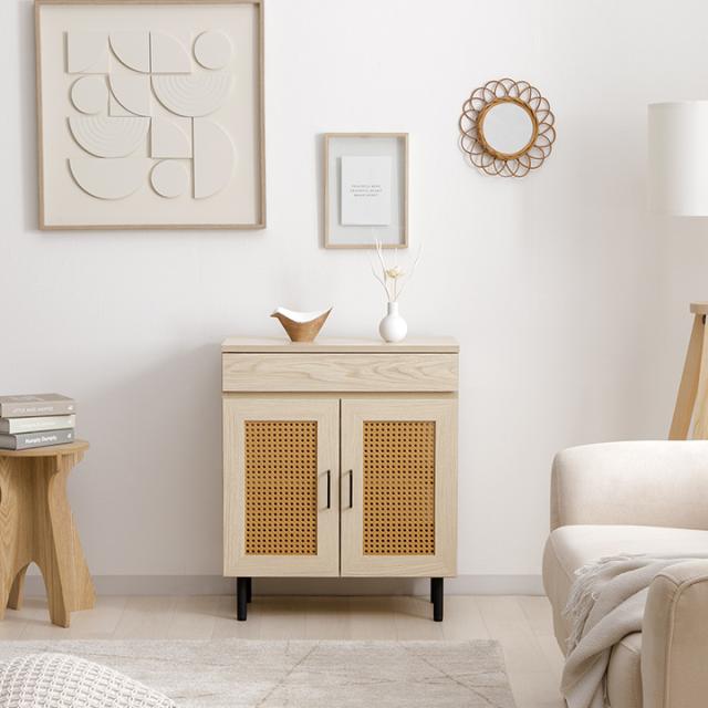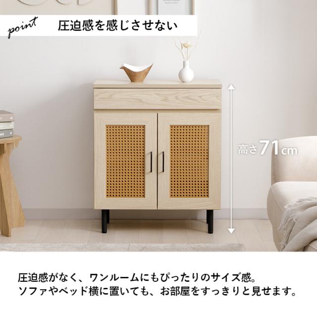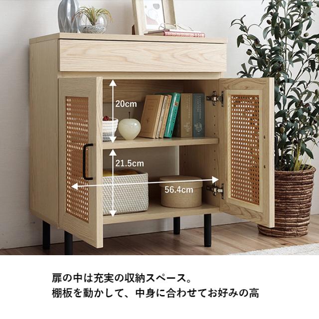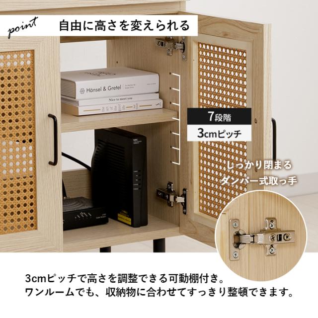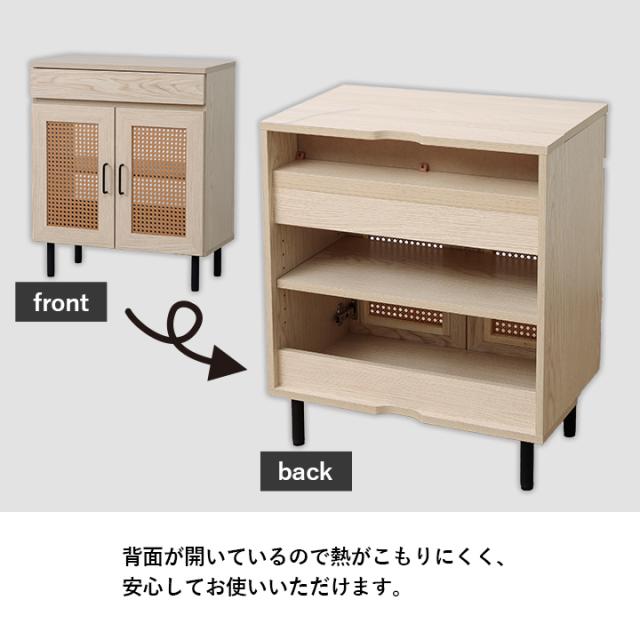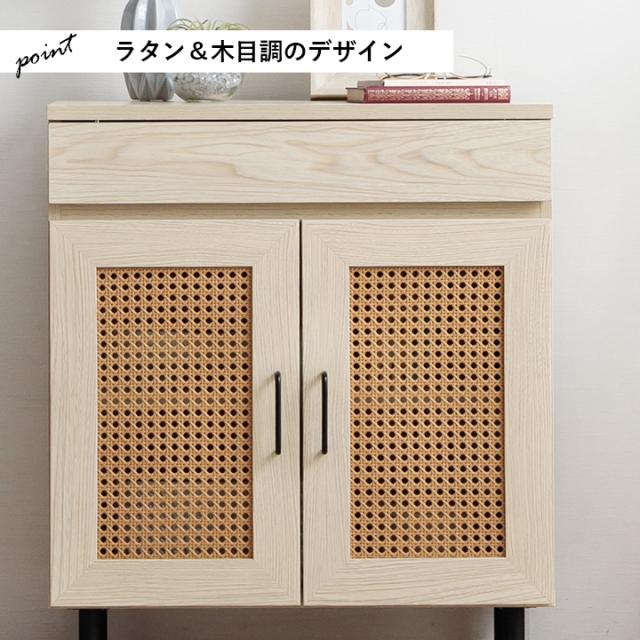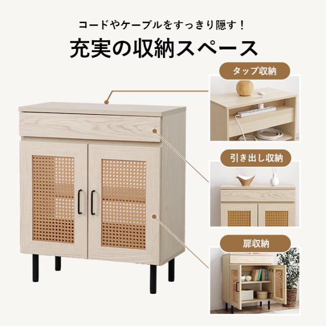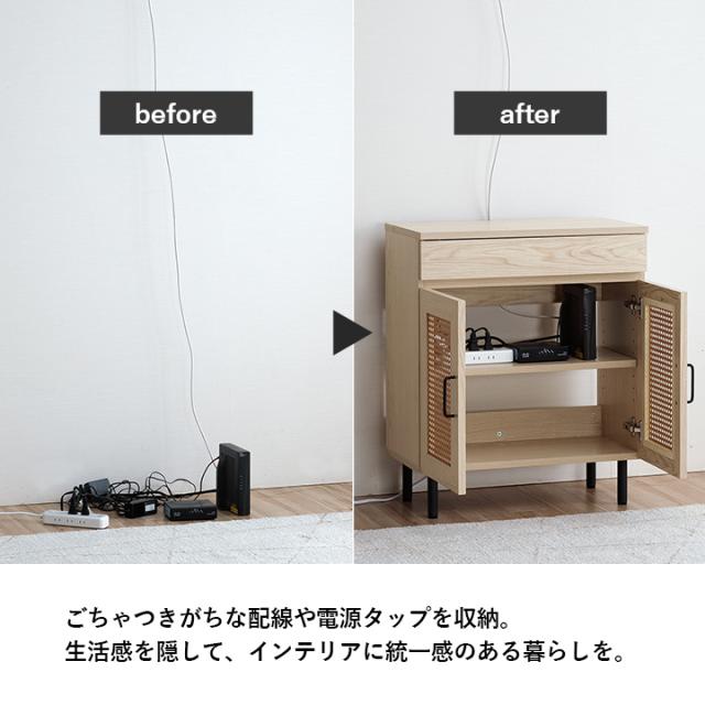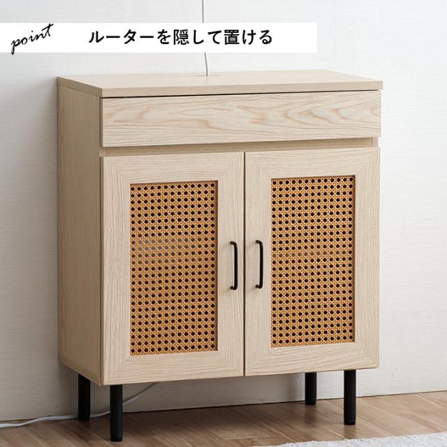 ルーター収納 キャビネット 「 ナティア ルーター隠し台 ワイド 」 幅60cm ナチュラル ラタン調 木目 北欧 おしゃれ 収納棚 棚 扉付き 電話台 ファックス台 リビング 一人暮らし 新生活