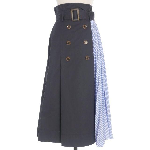 【中古】フレイアイディー FRAY I.D トレンチプリーツスカート ストライプ ドッキング フレアスカート 0 ネイビー