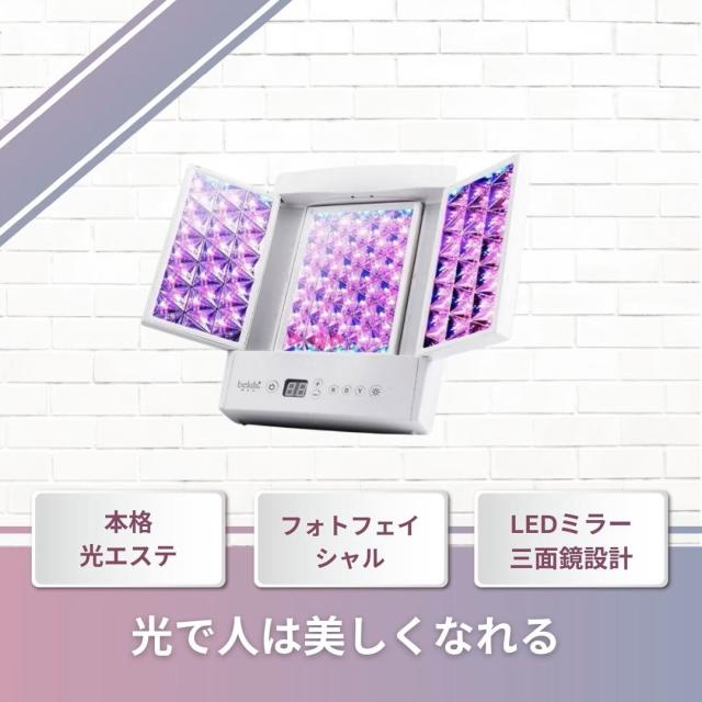 【光で人は美しくなれる】美ルル ヒカリプラス カラーセラピー 毎日のメイクにも ワイド3面鏡 ミックスカラーLED LED美顔器 光美容 女優ライト 3面強 全身ケア おうち美容 ハンズフリー 乾燥小じわ ハリ 弾力 肌荒れを防ぐ