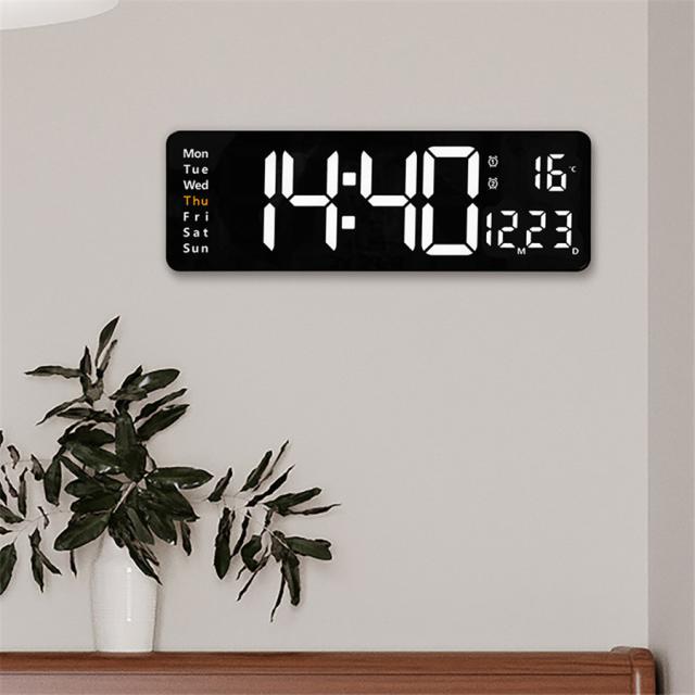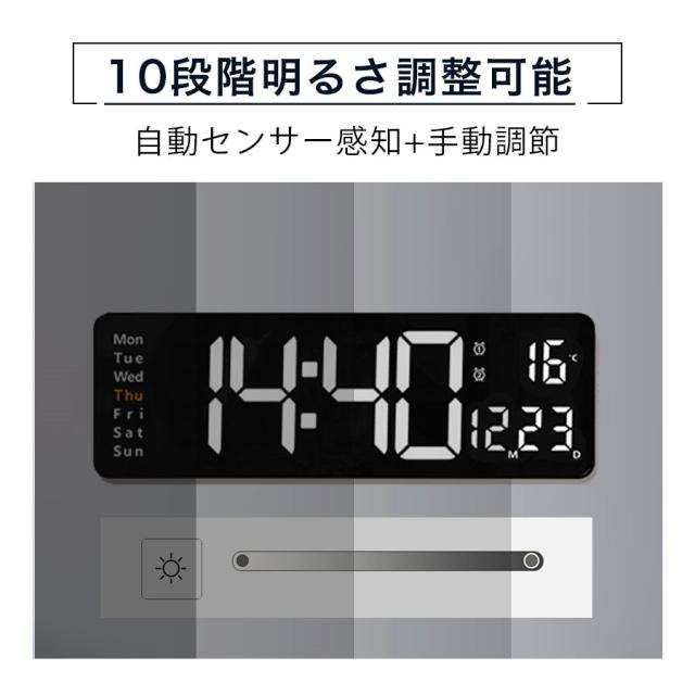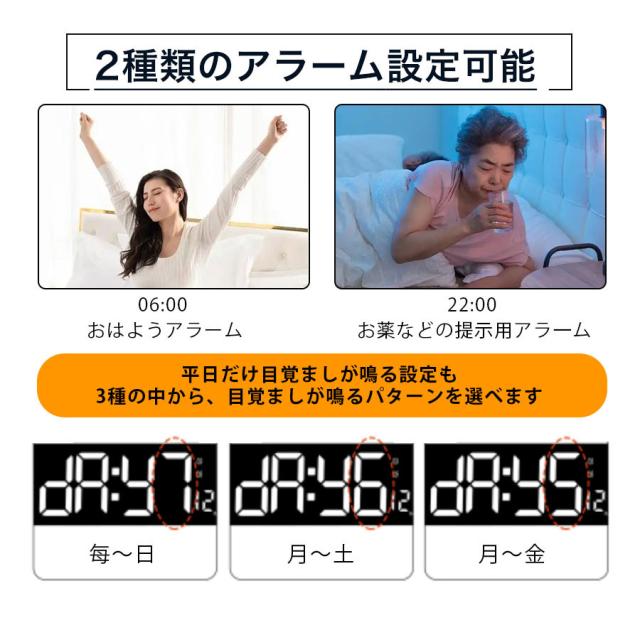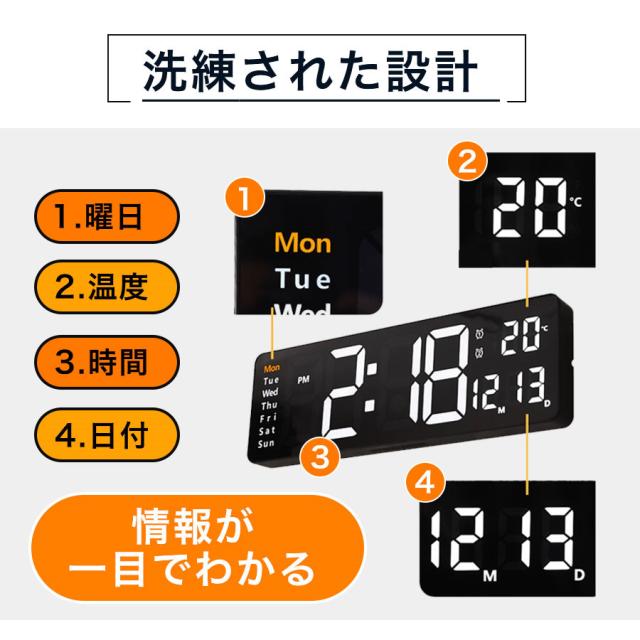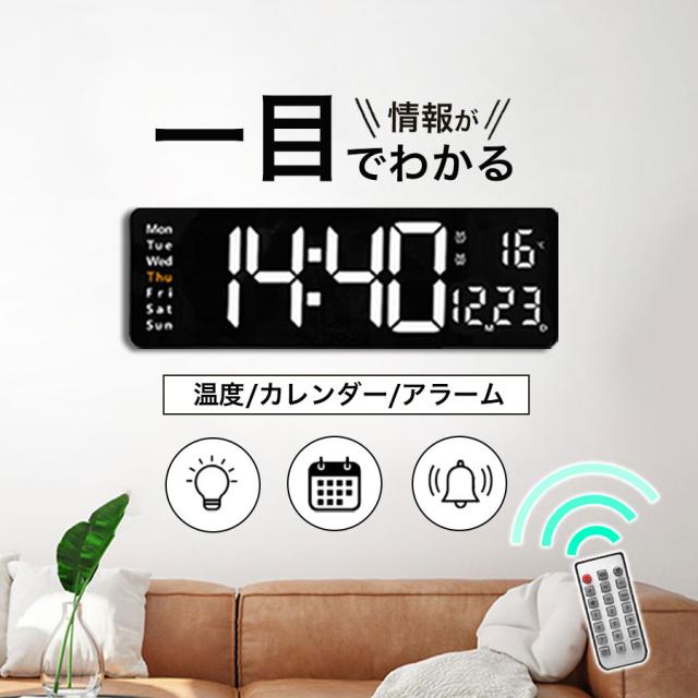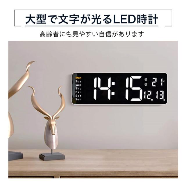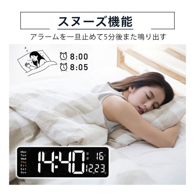 デジタル時計 大型 時計 壁掛け時計 USB給電式 目覚ま時計し カレンダー 温度計 アラーム 大文字 部屋 寝室 オフィス 日本
