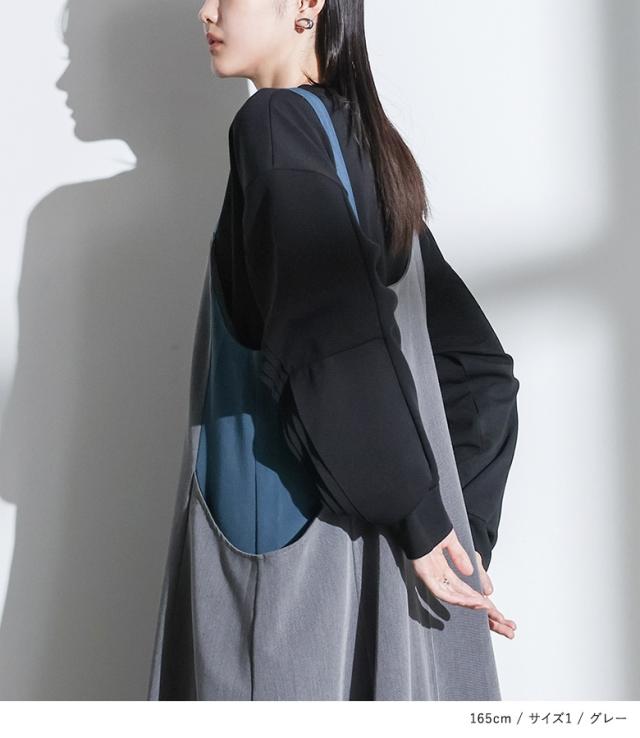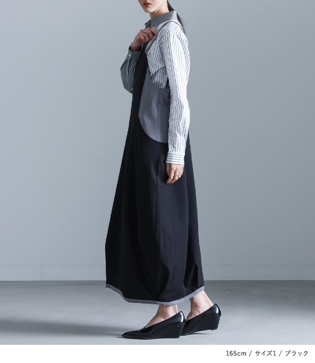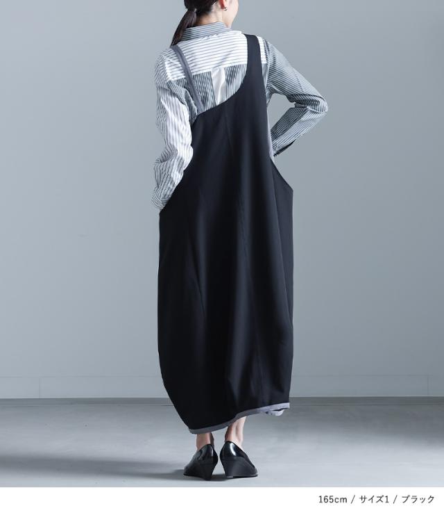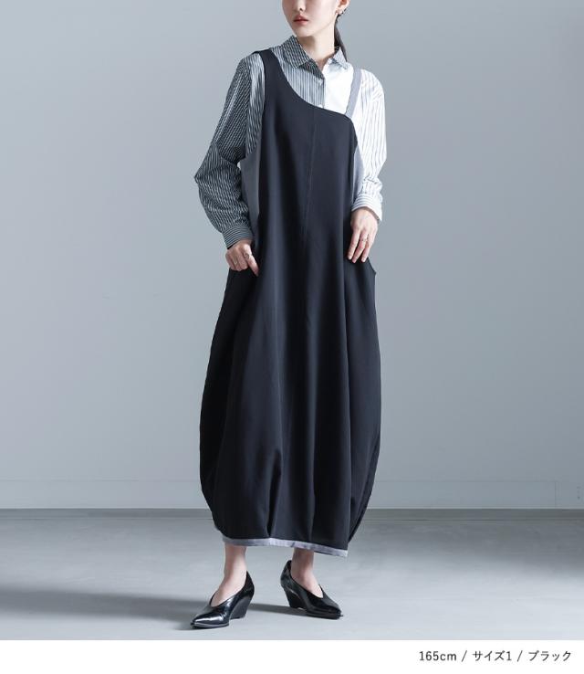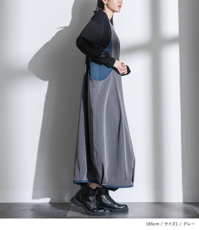 <冬新作>『配色コクーンジャンスカ』【メール便不可】【30】[ジャンパースカート レディース ワンピース ロング丈 ジャンスカ レイヤード 重ね着 コクーンワンピース 配色 落ち感 ゆったり 楽ちん 秋 冬 春]