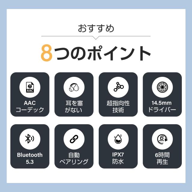 最先端技術のBluetooth5.3を採用した ブルートゥース イヤホン は、接続の安定性と速度を極め、音楽、動画、ゲームプレイ中でも、途切れることなくスムーズなオーディオ体験を実現できる こつでんどう イヤホン bluetooth 。さらに、省エネ性能も向上し、長時間の使用にも最適な 骨伝導イヤホン です。iOS、Android、PCなど、様々なデバイスとの互換性があり、迅速かつ簡単にペアリングできます。音楽を楽しむもよし、オンライン会議に参加するもよし、この マイク付きイヤホン はあなたのデジタルライフをより豊かに彩ります。
