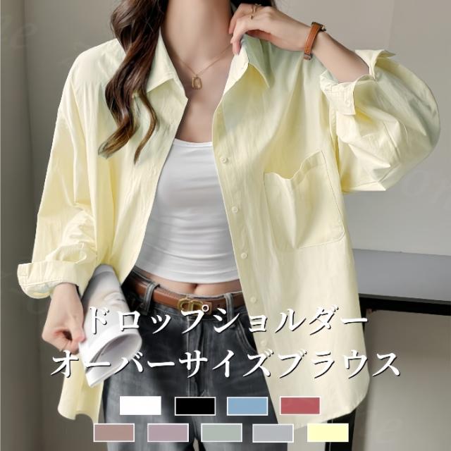 シャツ ドロップショルダー ブラウス 新作 送料無料 コットン100% トップス レディース こなれ感 抜け感 チュニック 長袖 着痩せ ゆったり 体型カバー ビッグシルエット カジュアル 入学式 入園式