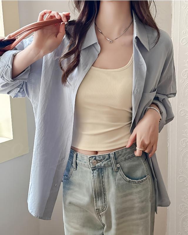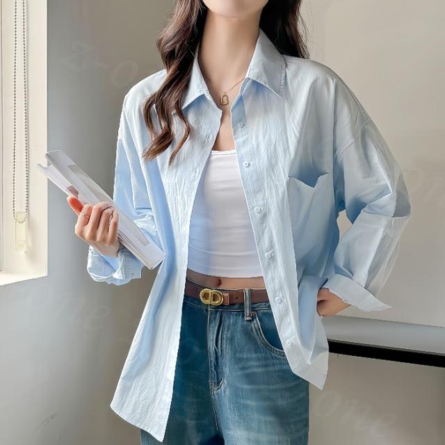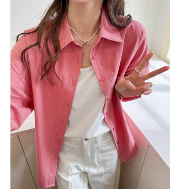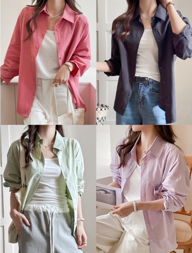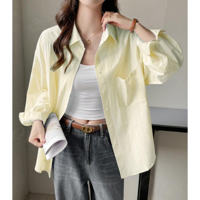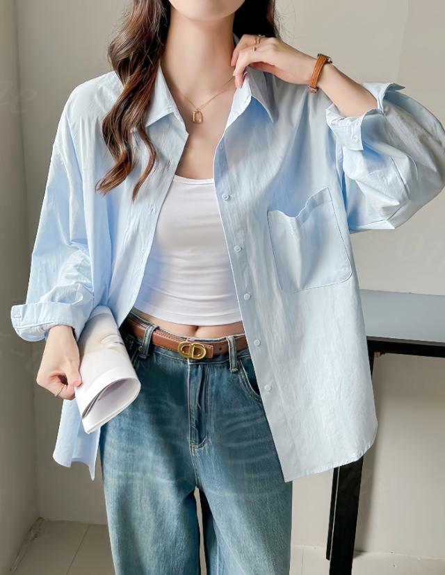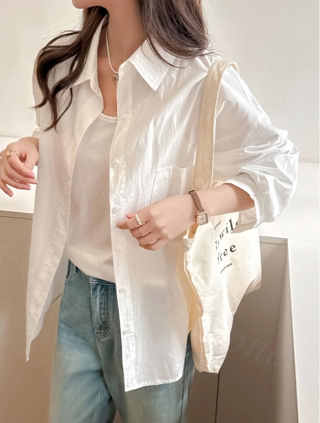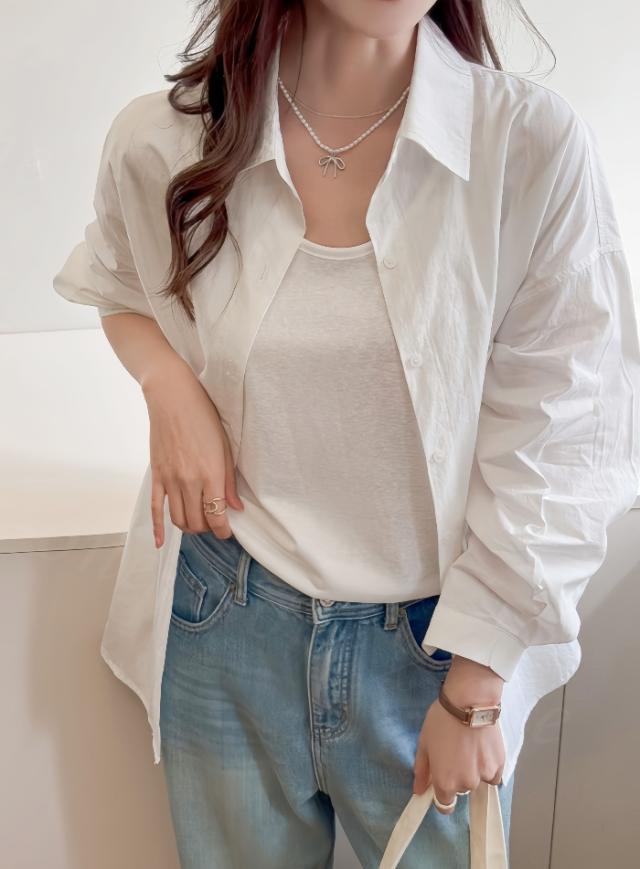 ゆったりとしたオーバーサイズのシャツで、直線的なシルエットが特徴です。