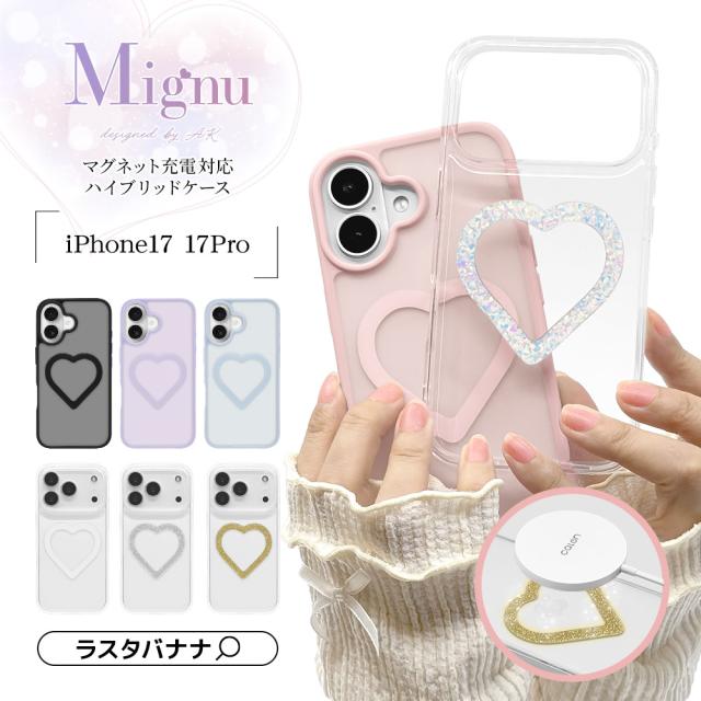 iPhone17 17 Pro ケース カバー ハイブリッド マグネットアクセサリー対応 Mignu ミニュ 耐衝撃吸収 ハート TPUバンパーケース ワイヤレス充電 アイフォン スマホケース ラスタバナナ