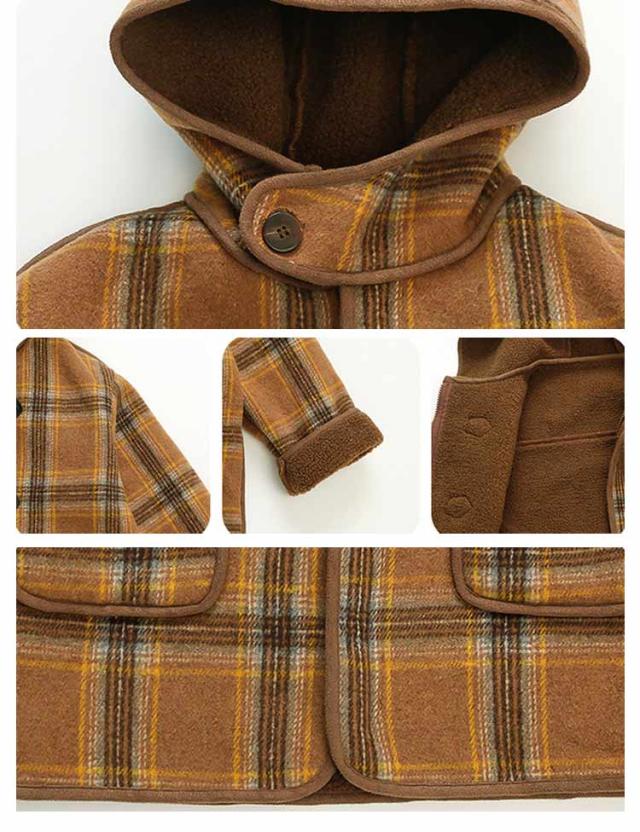 | 着るだけで上品なお洒落が楽しめる!肌寒い季節に最適なコートです。 保温性抜群なボア素材を採用しており、高い防寒効果があります。 両側はポケットを備えており、寒い季節は手をポケットに入れて温めることもできます。 前開きはスナップボタンの構造で、着脱も便利です。 お出かけ・通園通学のピッタリ、防寒・保温アウターが大人気です。 | |