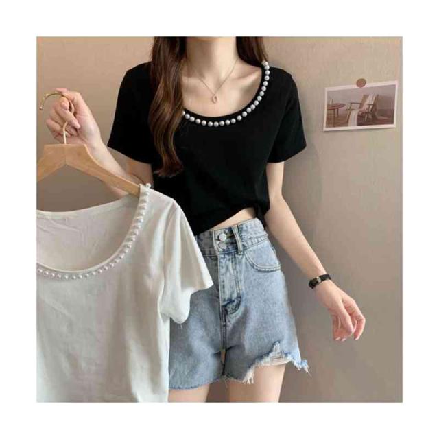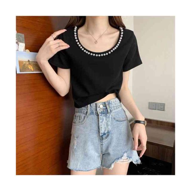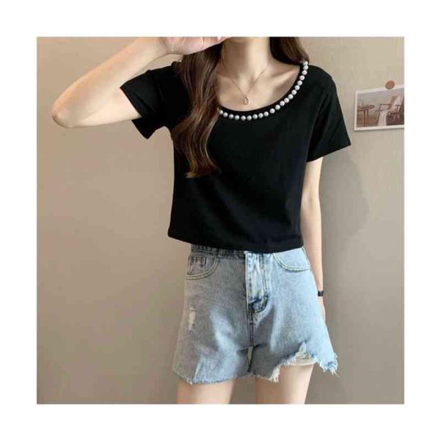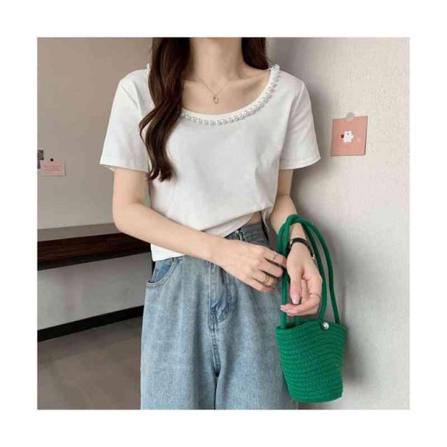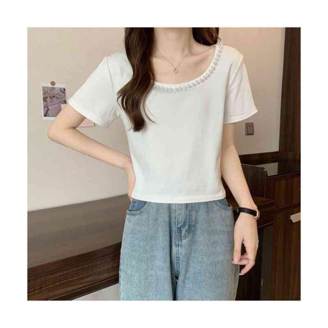 レディース 半袖 ネックライン おしゃれブラウス トップス サマーブラウス フォーマルブラウス フェミニン レディース ビジュー付き 送料無料