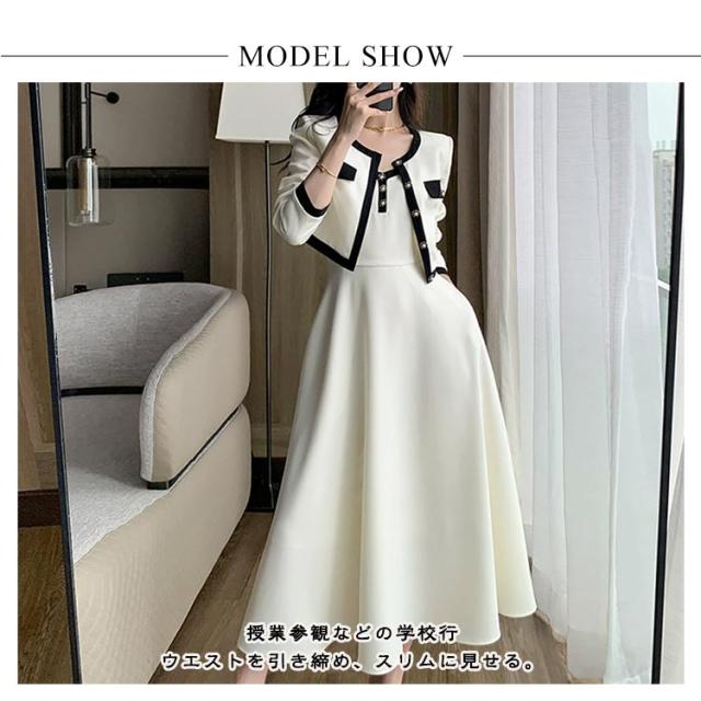 スカートスーツ ショートアウター 秋 春 ワンピース 入学式 上下 2点セット レディース 長袖 ロング丈 ワンピーススーツ ジャケット キャミワンピース 無地 セットアップ スーツ きれいめ ワンピ 冬 結婚式 きれいめ 20代 30代 40代 50代 ギフト プレゼント
