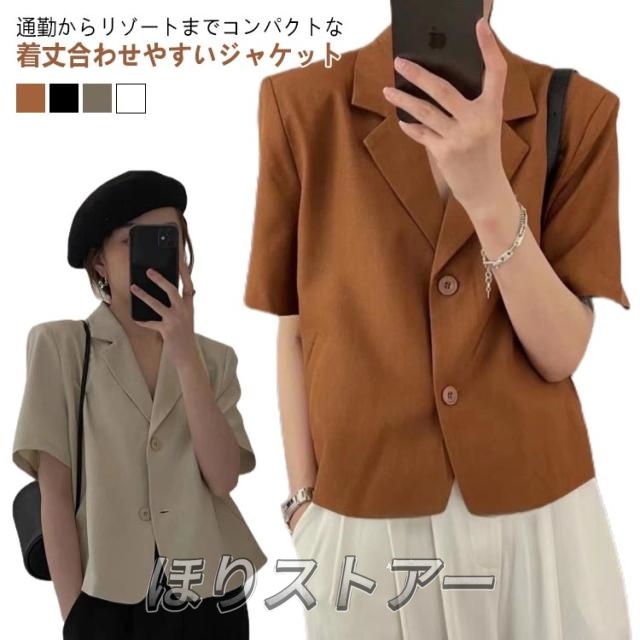 韓国風 薄手 テーラードジャケット 春 レディース サマージャケット きれいめ 通勤 スーツジャケット ジャケット 着?せ オシャレ シャツジャケット ライトアウター ショート丈 無地 カジュアル 普段着 結婚式 40代 夏 春夏 サマー 涼しい 20代 30代 半袖