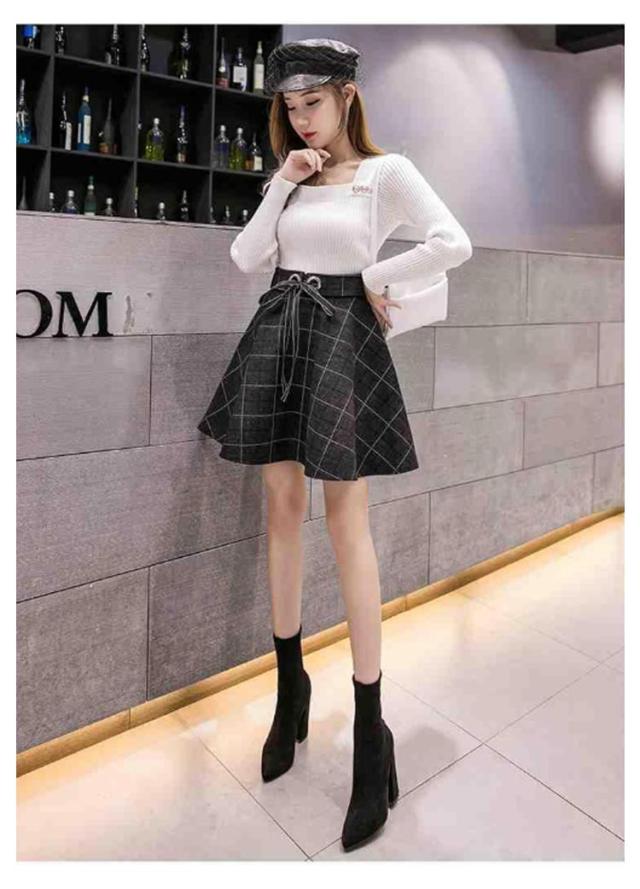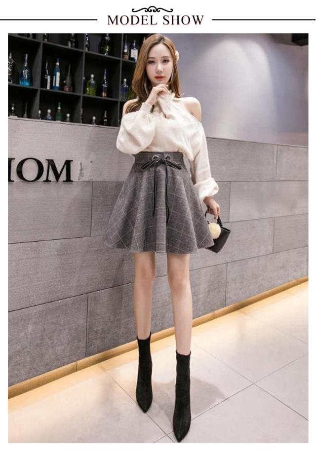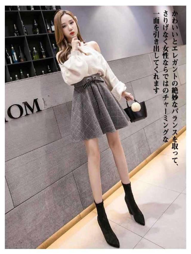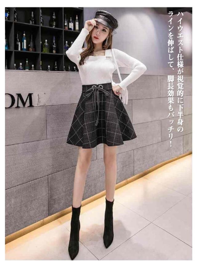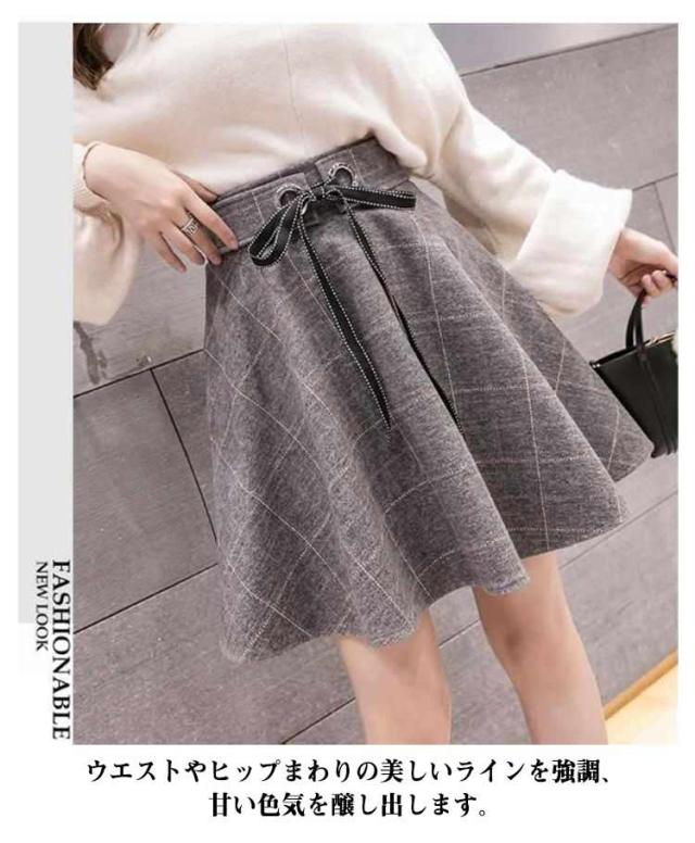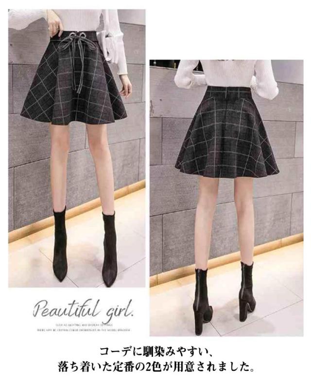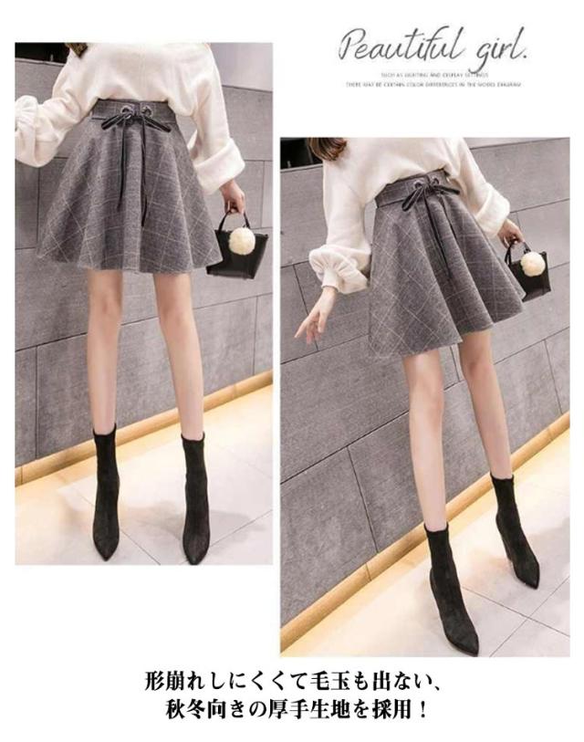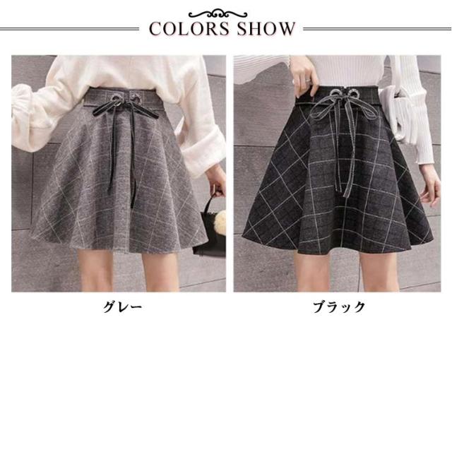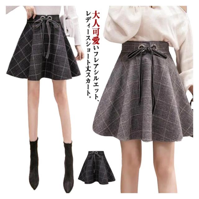 フレアスカート レディース ミニスカ 厚手 ハイウエスト ショートスカート Aライン チェックスカート ウェストリボン 冬 秋 ボトムス ショート丈 ミニスカート 美脚 厚手 体型カバー 韓国 秋 冬 ブラック グレー