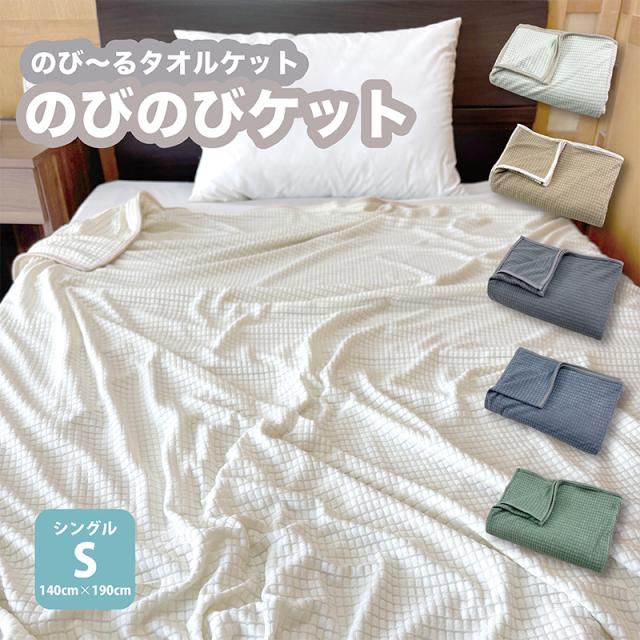 のびのびケット 伸びるタオルケット 140cm×190cm 丸洗いOK ブランケット シングル ポリエステル100% 薄手 肌掛け シンプルデザイン ホワイト ベージュ グリーン ネイビー