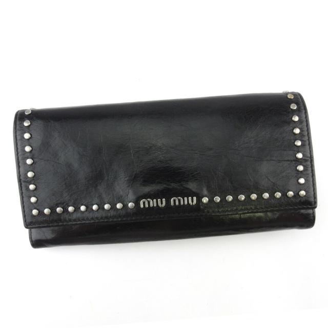 【新春セール★30%OFF】ミュウミュウ MIUMIU 長財布スタッズ ハートチャーム付き ブラック シルバー レディース 中古