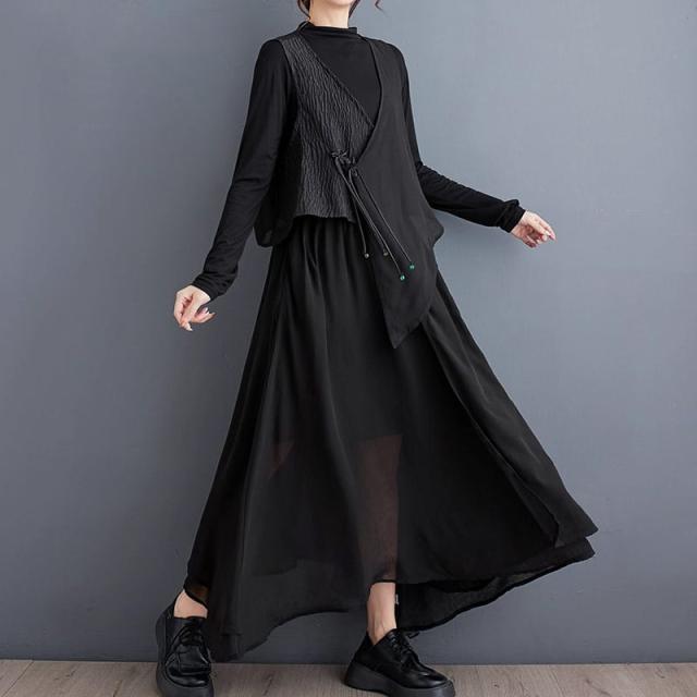 ベスト アンサンブル セットアップ ロング スカート 上下セット プリーツ シフォン ジレ アシンメトリー 2点セット pLegLad店 華やか 大人 40代 50代 体型カバー