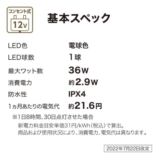 [LED数1球/1台あたり]電圧:12V、消費電力:約2.9W