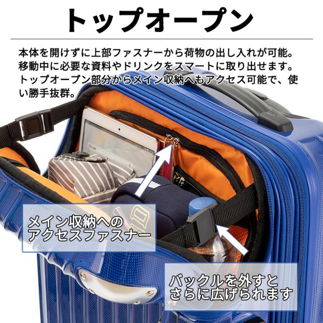 容量35L→43Lに拡張可能、便利なトップオープン機能付きスーツケース。