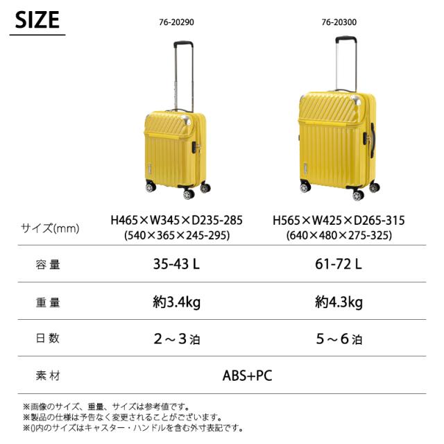 機内持ち込み トラベリスト TRAVELIST モーメント スーツケース 35L (拡張 43L) Sサイズ 76-20290 トップオープン TSAロック