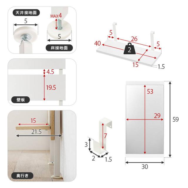 サイズ:(約)幅40×奥行21.5×高さ200〜265cm